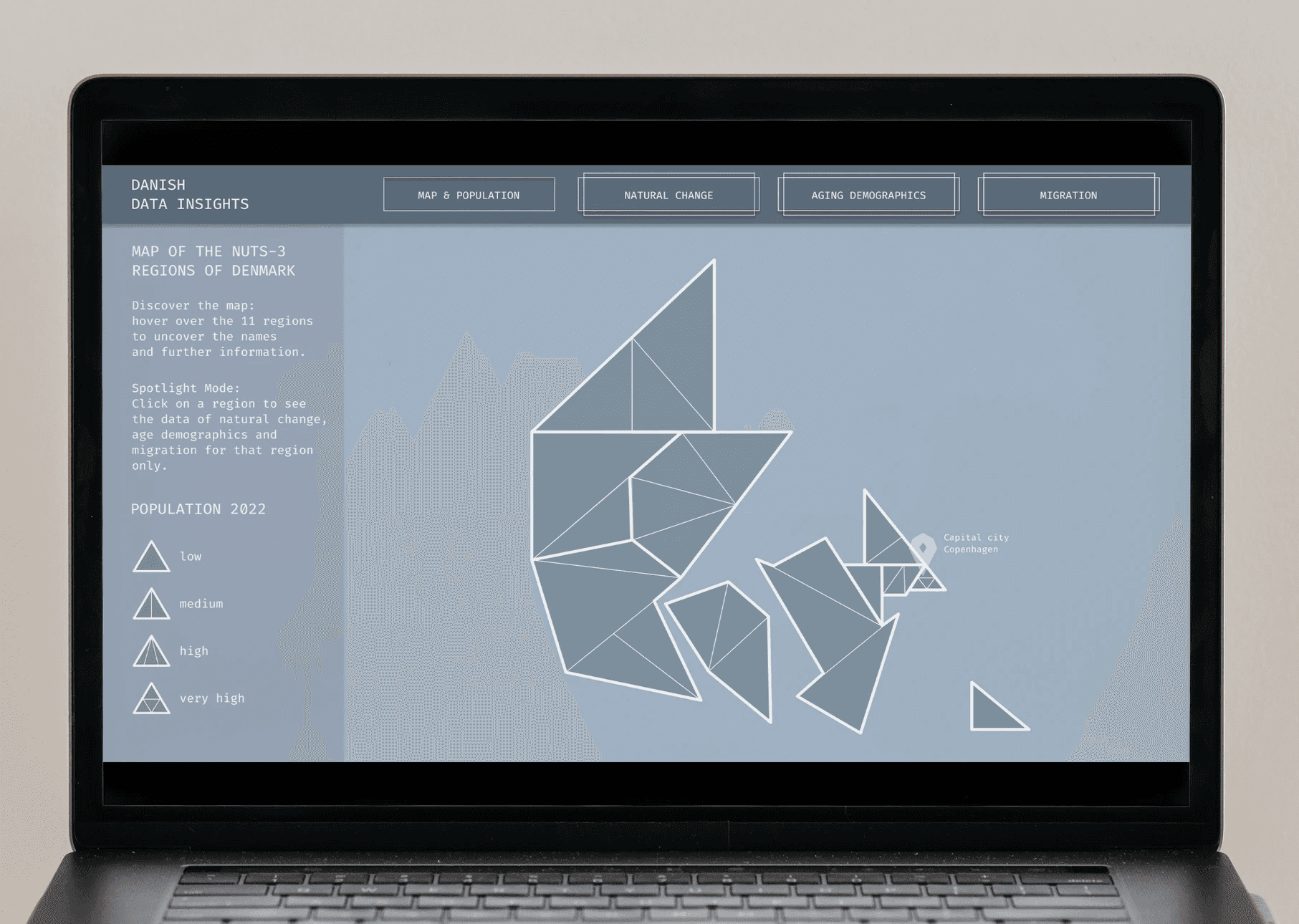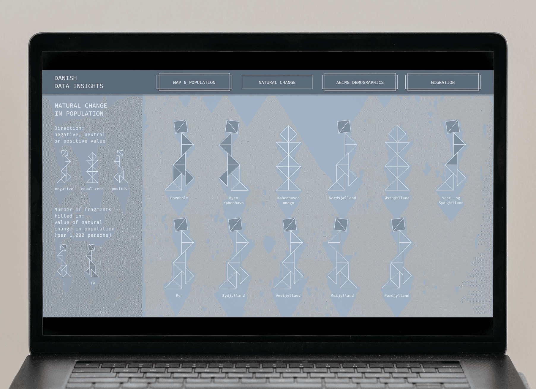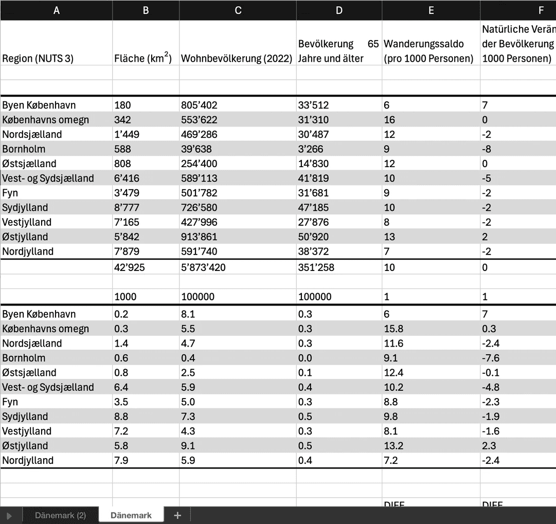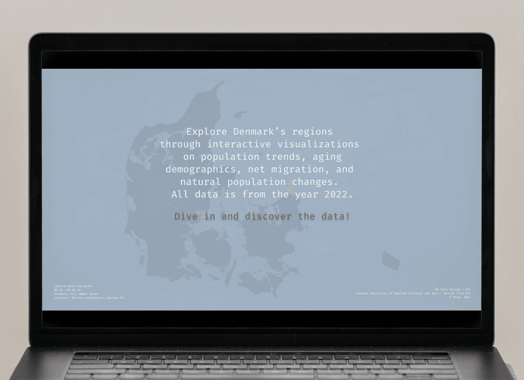 Mit diesem Projekt wagte ich mich zum ersten Mal ins Webformat und arbeitete dabei erstmals mit Figma. Im Zentrum steht Dänemark als Datensatz, den ich gesammelt, aufbereitet und in einen interaktiven Prototyp übersetzt habe. Der Prozess reichte von ersten Handskizzen über detailreiche Visualisierungen in Illustrator bis zur klickbaren Page in Figma.